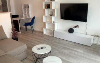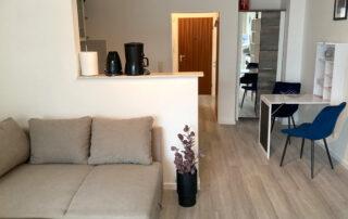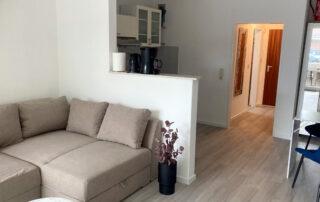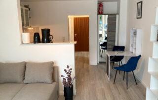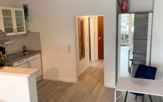 Mit einer Fläche von 34m² aufgeteilt auf einen Wohn-/Essbereich samt Smart-TV und geräumigem Doppelbett, einem Badezimmer mit Dusche und einer geräumigen Diele samt Wohnküche, bietet die Kurzzeit-Unterkunft Platz für bis zu 2 Geschäftsreisende. Sie wurde 2023 komplett renoviert und neu eingerichtet.